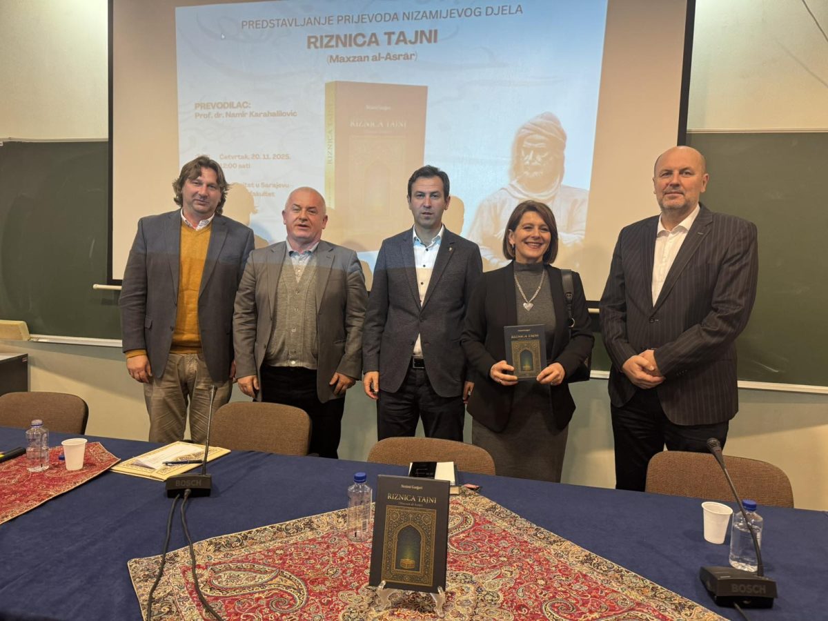 U četvrtak 20. 11. 2025. godine na Filozofskom fakultetu Univerziteta u Sarajevu održana je svečana promocija prijevoda na bosanski jezik djela Riznica tajni (Makhzan al-Asrār) velikog perzijskog pjesnika Hakima Nizamija Gandževija. Ovo znamenito djelo klasične perzijske književnosti preveo je i priredio prof. dr. Namir Karahalilović na osnovu najnovijeg i do sada najuspjelijeg kritičkog izdanja izvornika na perzijskom jeziku.