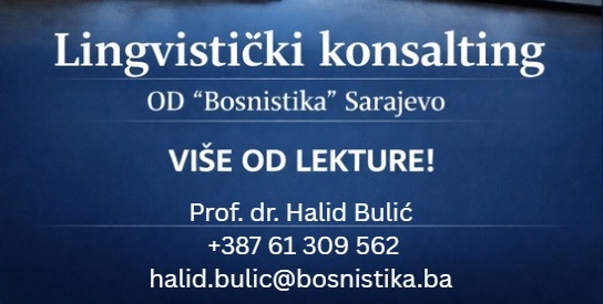 OD “Bosnistika” Sarajevo agencija je za lingvistički konsalting. Nudi usluge lingvističkog konsaltinga za izdavače, autore, scenariste, glumce, režisere i druge filmske radnike, državne institucije, nevladine organizacije, kompanije i sve koji znaju da ZAPISANO OSTAJE i da je važno da ono što je zapisano bude PISMENO.
