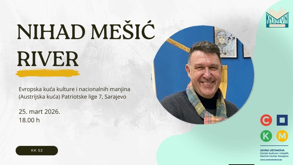 Pedeset drugo izdanje programa Književni korner održat će se u srijedu 25. marta 2026. godine s početkom u 18 sati u Evropskoj kući kulture i nacionalnh manjina (Austrijska kuća), koja se nalazi u Parku “Kemal Monteno” (Patriotske lige 7, Sarajevo). Gost programa je Nihad Mešić River, a domaćin Goran Vrhunc.